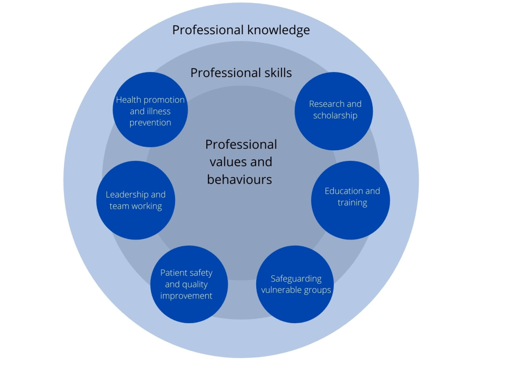 Having made the choice to practice in secondary or tertiary care, higher training offers great opportunities to focus on professional capabilities. The GMC expects doctors to demonstrate capabilities across all nine domains of the framework which derive from the GMC’s own fitness to practice data, enabling them to deliver safe effective and high quality care to patients.